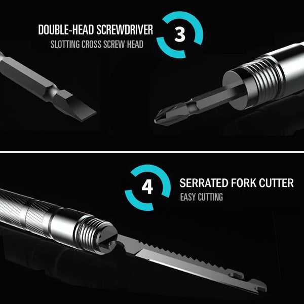 Comes with different accessories tools, like cutter, fork cutter, extension rod, screwdriver and flintstone whistle, greatly meeting your different using needs in outdoor.