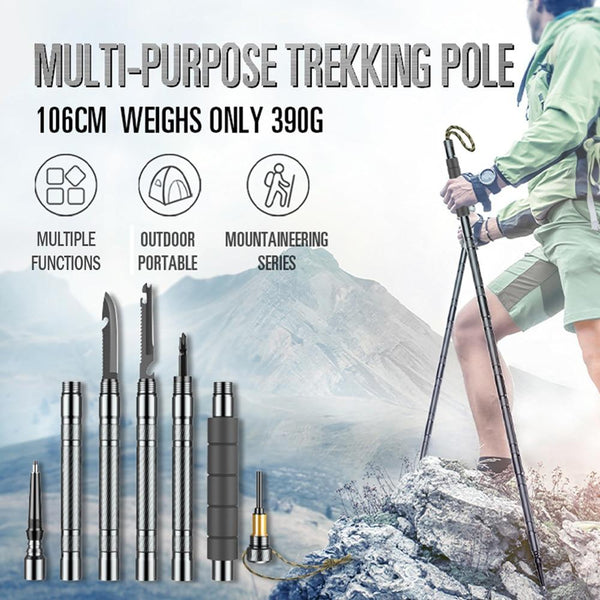 Outdoor Multi-purpose Trekking Pole Portable Aluminium Alloy Hiking Walking Stick Mountaineering Camping hiking climbing Tools